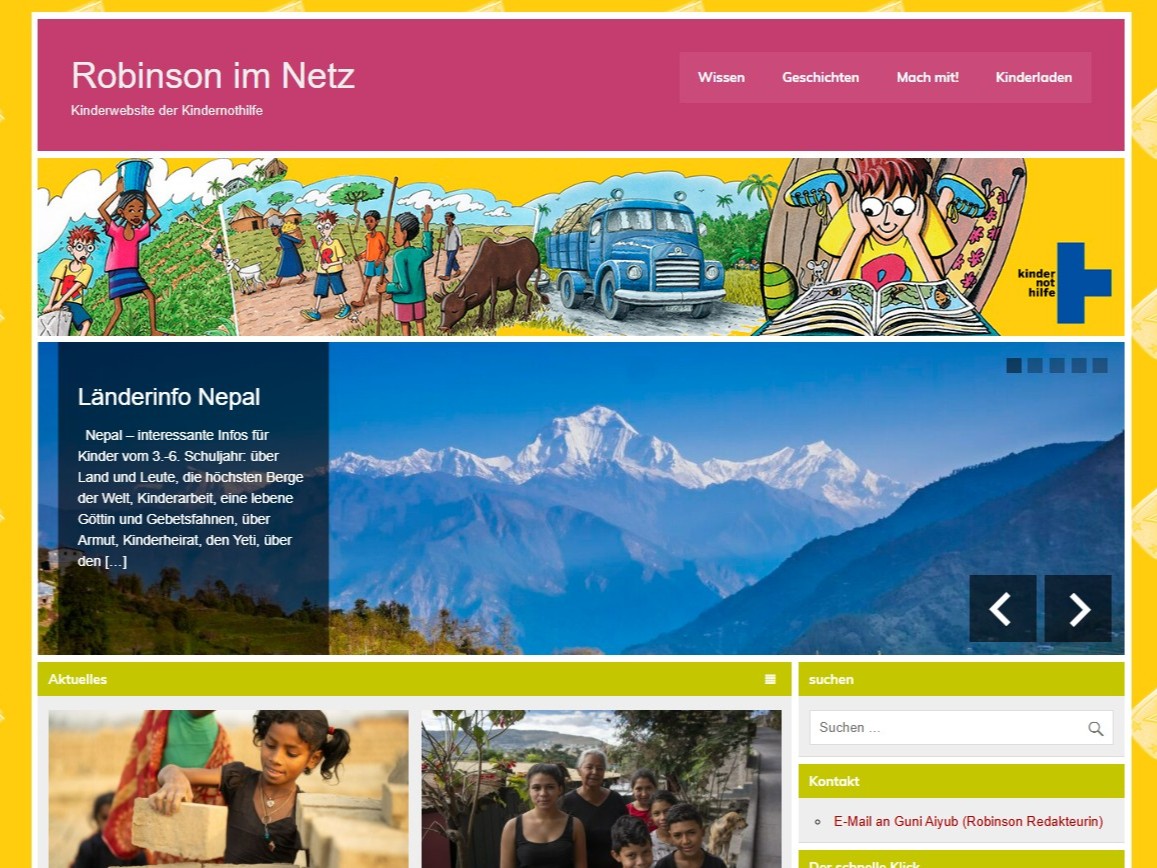 Bei Robinson im Netz kannst du Robinson nicht nur durch Deutschland begleiten, sondern um die ganze Welt. Erkunde andere Länder und das Leben von Kindern dort. Außerdem gibt es jede Menge Koch- und Basteltipps. Schau doch mal vorbei!