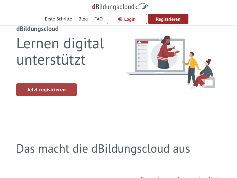 zu Erste Schritte [https://blog.dbildungscloud.de/erste-schritte/] Schritt 1: E–Mail-Adressen – dBildungscloud braucht für den Registrierungsprozess der Nutzer:innen jeweils eine gültige E–Mail-Adresse – In der dBildungscloud dient die E–Mail-Adresse der eindeutigen Zuordnung jedes:jeder