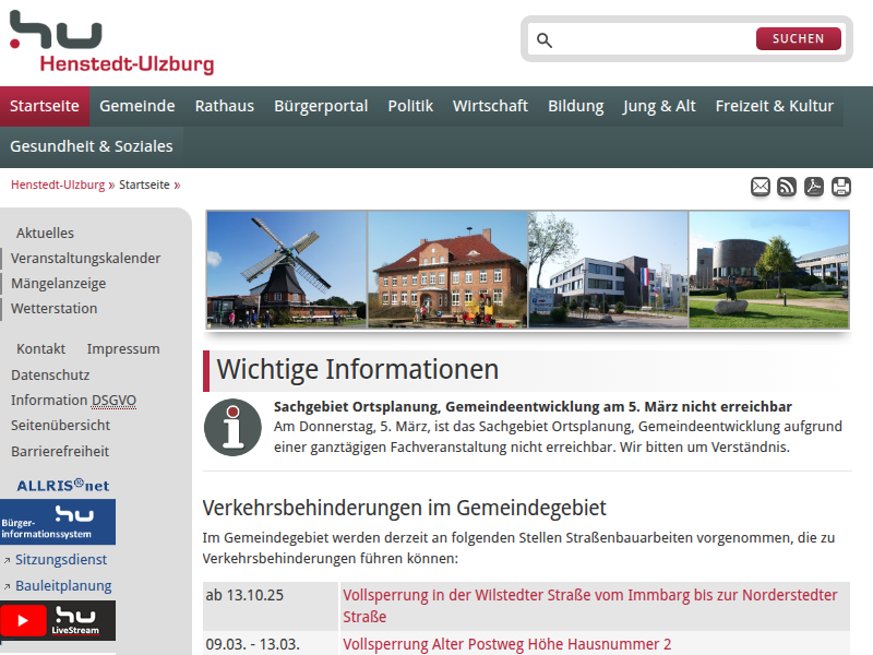 Aktuelles – Aktuelle News und Informationen aus der Gemeinde Henstedt-Ulzburg. auf der Webseite der Gemeinde Henstedt-Ulzburg mit aktuellen Informationen, Wegweisern, Ortsplan, Terminkalender und vielen weiteren Angeboten für Mitbürger und die, die es werden wollen. Henstedt-Ulzburg liegt in der Metropolregion Hamburg und ist die größe Gemeinde in Schleswig-Holstein mit knapp 30.000 Einwohnern.