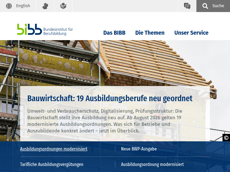 Das Bundesinstitut für Berufsbildung (BIBB) ist das anerkannte Kompetenzzentrum zur Erforschung und Weiterentwicklung der beruflichen Aus- und Weiterbildung in Deutschland.