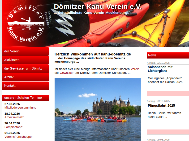 Der südlichste Kanuverein Mecklenburgs. Der Dömitzer Kanu Verein e.V. ist im Bereich Kanuwandern aktiv.
