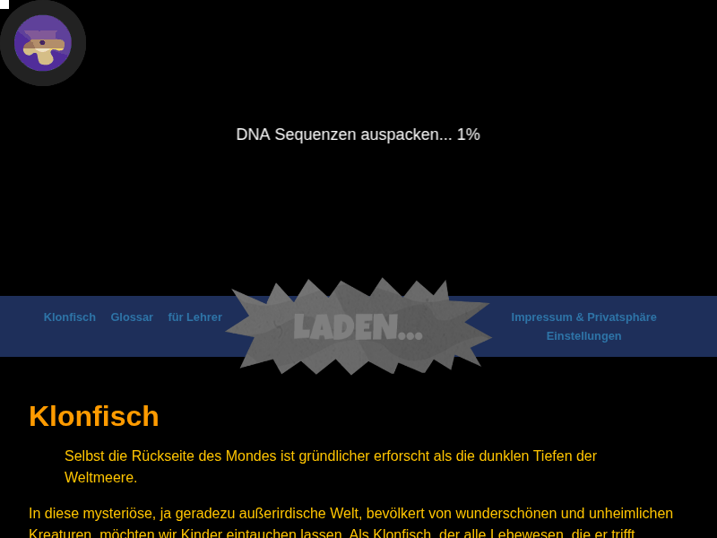 Klonfisch ist ein Lernspiel rund um das Thema Tiefsee. Entdecke die abenteuerliche Welt und die unheimlichen Kreaturen der dunklen tiefen unserer Weltmeere. Klonfisch ist kostenlos und werbefrei.