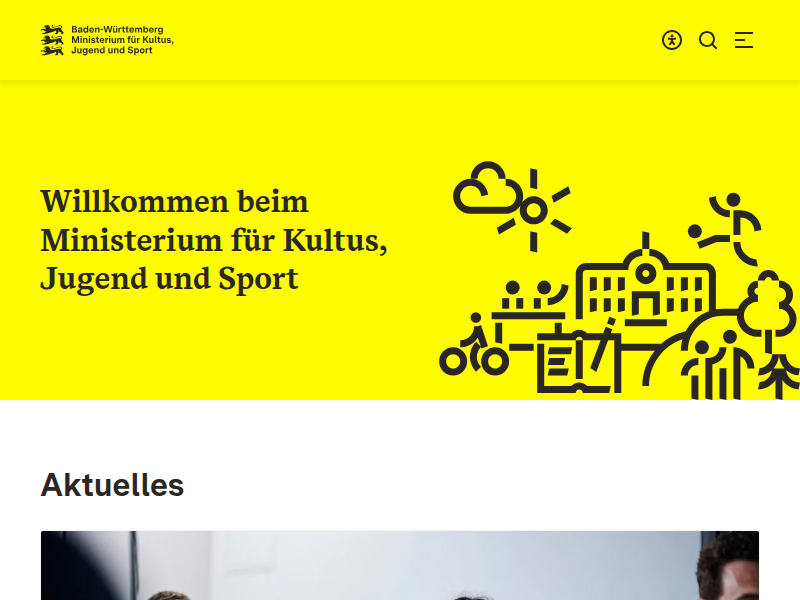Barrierefrei gestalteter Internetauftritt des Ministerium für Kultus, Jugend und Sport Baden-Württemberg.
