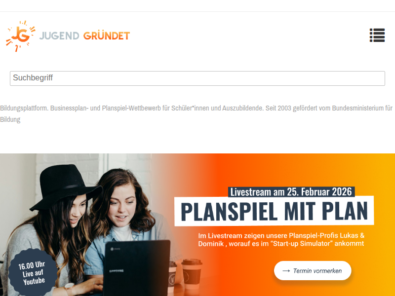 JUGEND GRÜNDET: Bildungsplattform und Online-Wettbewerb für Schüler*innen und Auszubildende. Zukunft gestalten!