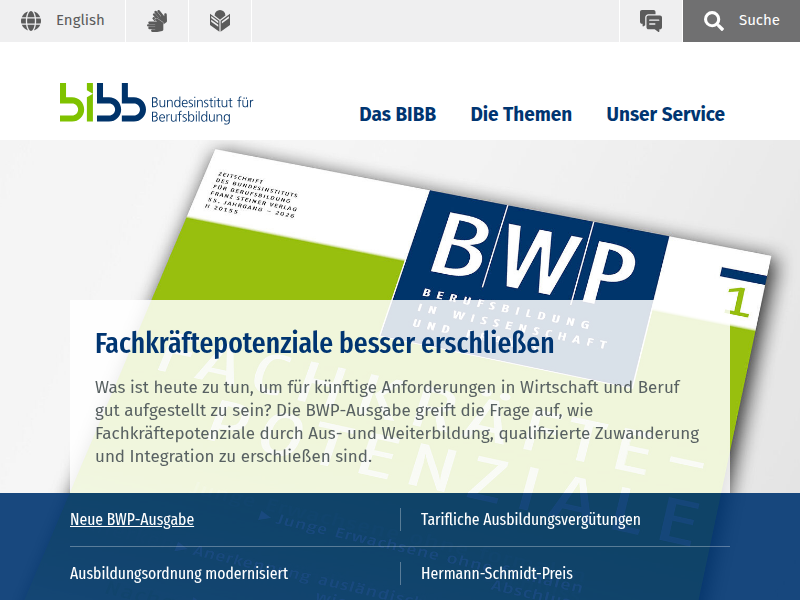 Das Bundesinstitut für Berufsbildung (BIBB) ist das anerkannte Kompetenzzentrum zur Erforschung und Weiterentwicklung der beruflichen Aus- und Weiterbildung in Deutschland.