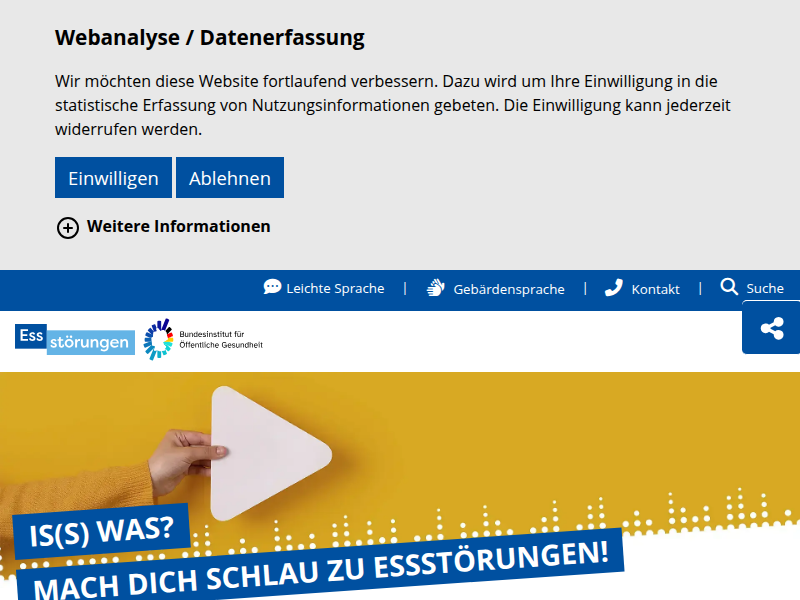 E-mail versenden Infokarte: Essstörungen – Angebote des BIÖG Inhalt: Die Infokarte informiert in aller