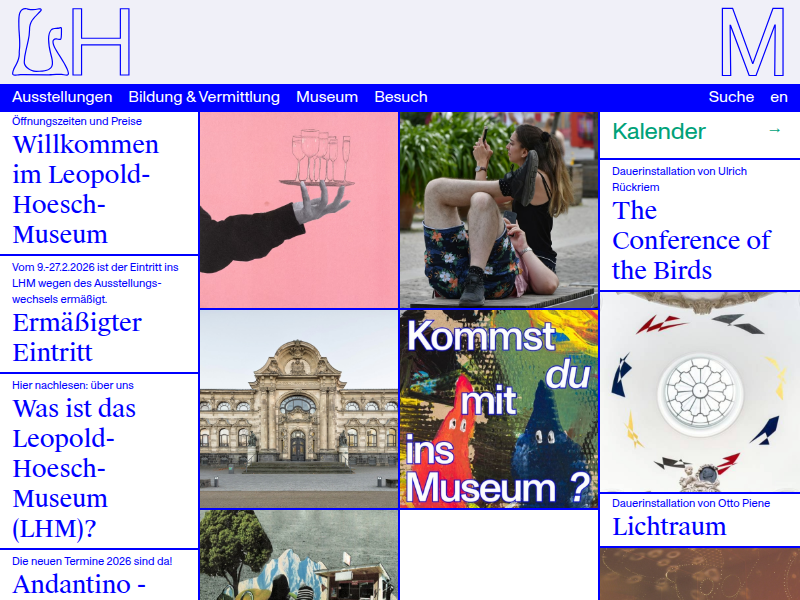 Das Leopold-Hoesch-Museum ist ein Museum für Bildende Kunst in der Stadt Düren. Die Sammlung umfasst bedeutende Werke der Klassischen Moderne, der Konkreten Kunst, der ZERO-Bewegung und der Gegenwartskunst.