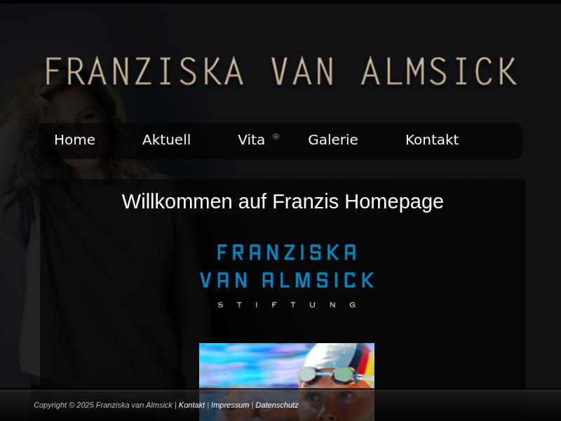 Die authentische Homepage von Ex-Schwimmstar Franziska van Almsick. Fotos, Lebenslauf, aktuelle News und vieles mehr!